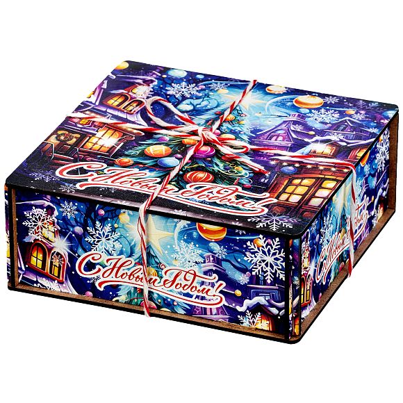 Интересный вариант новогоднего подарка – «Хрустальная Сказка». Он представлен в разделе Дерево. Отлично подойдет на подарок в 2026 году с символом Лошадь. Внутри такого презента находится кондитерский набор весом 600 граммов.