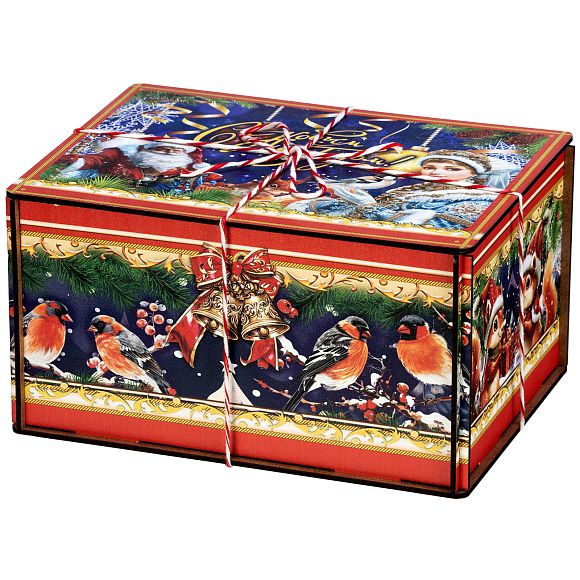 “Мелодия зимы” - это подарочный набор в деревянной упаковке, который прекрасно подойдет в качестве презента для подростка или взрослого. Это небольшой деревянный ящик, пестро украшенный со всех сторон разнообразными яркими иллюстрациями. На боковых гранях нарисованы лесные обитатели, а на крышке красуется изображение главных праздничных героев: Дедушка Мороз и Снегурочки. В состав подарка входит полтора килограмма кондитерских изделий на любой вкус, а также небольшой памятный сувенир в виде символа 2026 года - очаровательной лошадки. Благодаря такому подарку воспоминания о новогоднем торжестве останутся с вами на долгие месяцы.