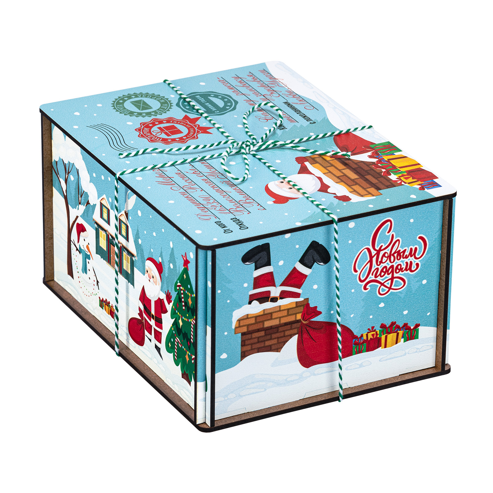 Новогодние сладкие подарки в деревянных упаковках уже не первый год пользуются высоким спросом у покупателей. Это не просто так - такие подаркаи отличаются оригинальностью и практичностью. Набор “Мятная ночь” не исключение. Это небольшая деревянная коробочка с виду напоминающая бандероль. Упаковка отличается необычным приятным цветом, который прекрасно сочетается  с разннобразными новогодними рисунками, помещенными со всех сторон. Сверху подарок перетянут удобной ручкой-шнурком. Набор состоит из килограмма разнообразных кондитерских изделий и небольшой памятный сувенир в виде лошадки - символа 2026 года.