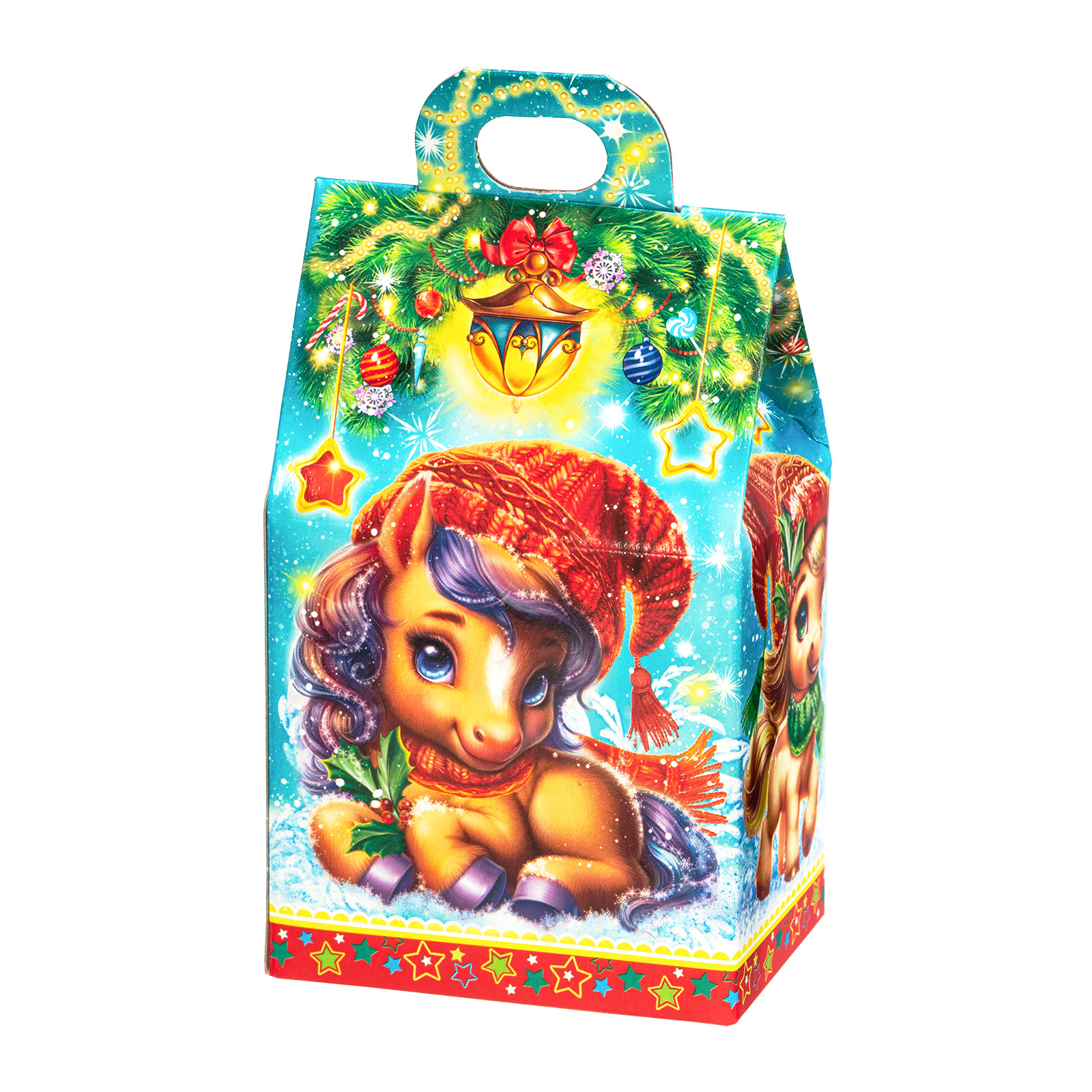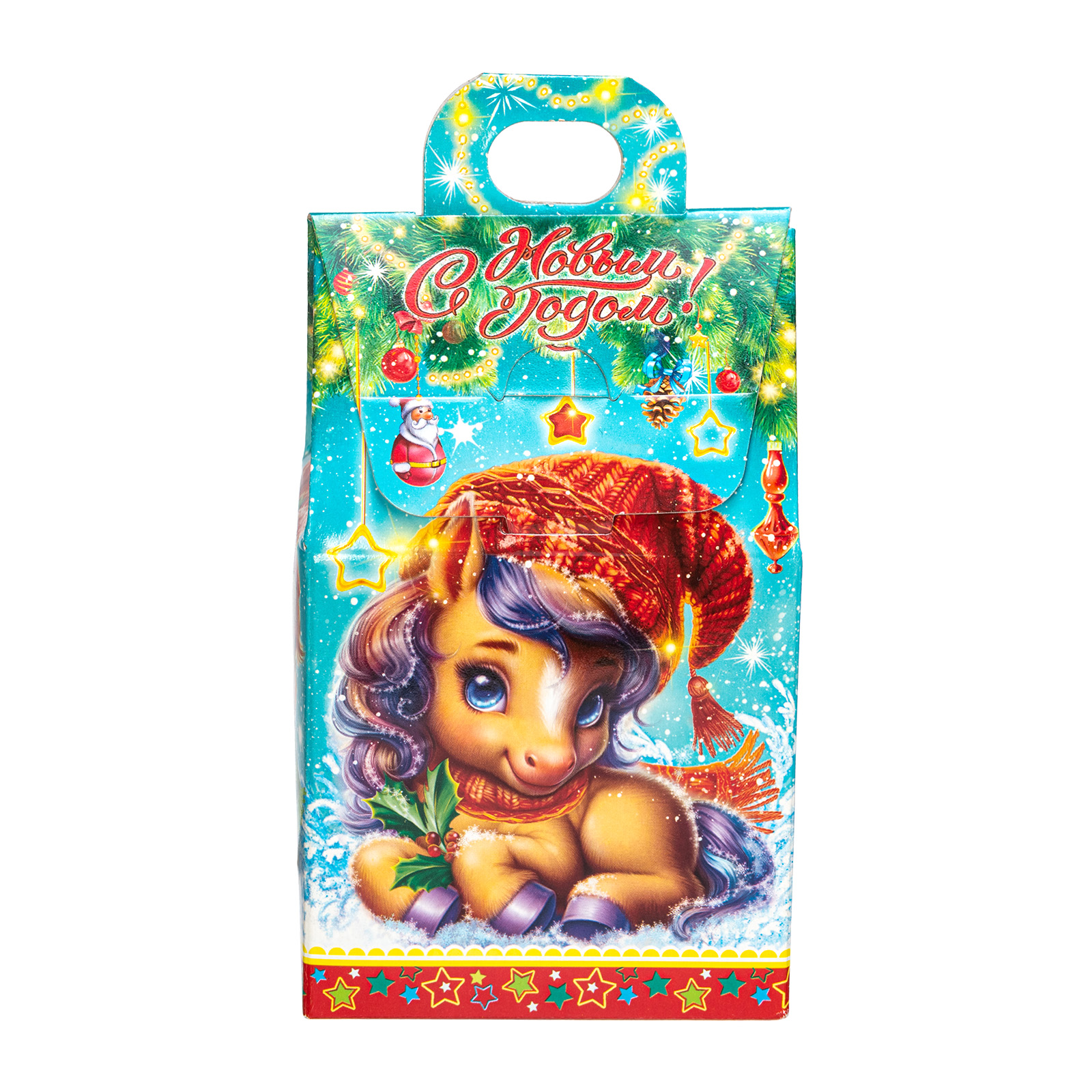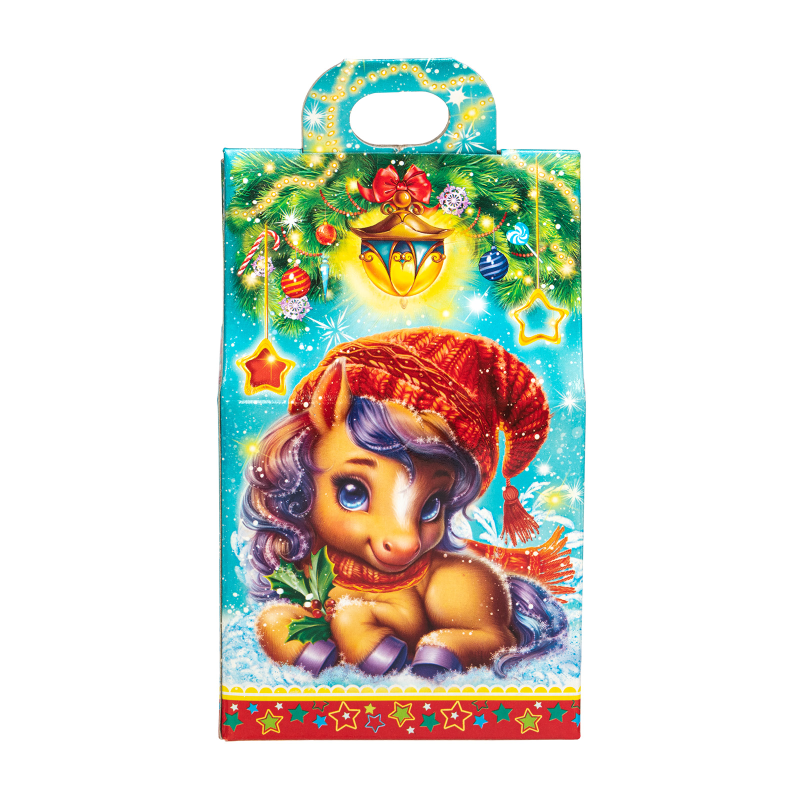 Несмотря на небольшой размер, новогодний сладкий подарок “Шалунишки” способен вызвать неподдельный восторг у маленьких сластен. В его состав входит 200 грамм разнообразных вкусных сладостей с мягкой начинкой и небольшой памятный сувенир-магнитик. Все это бережно помещено в небольшую картонную коробочку с изображением символов наступающего года - милых волшебных лошадок. Этот небольшой набор станет прекрасным выбором, если вы ищете новогодние сладкие подарки для утренника в детском саду - малыши точно останутся довольны!